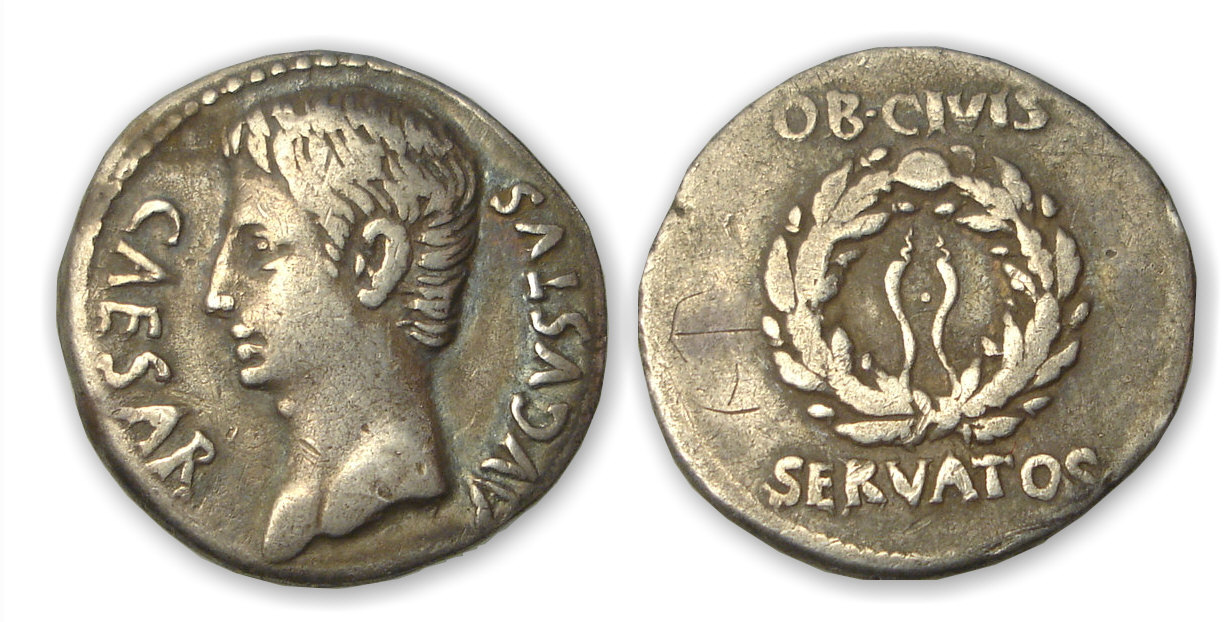 R/ OB CIVIS SERVATOS au-dessus et en-dessous d’une couronne de chêne.