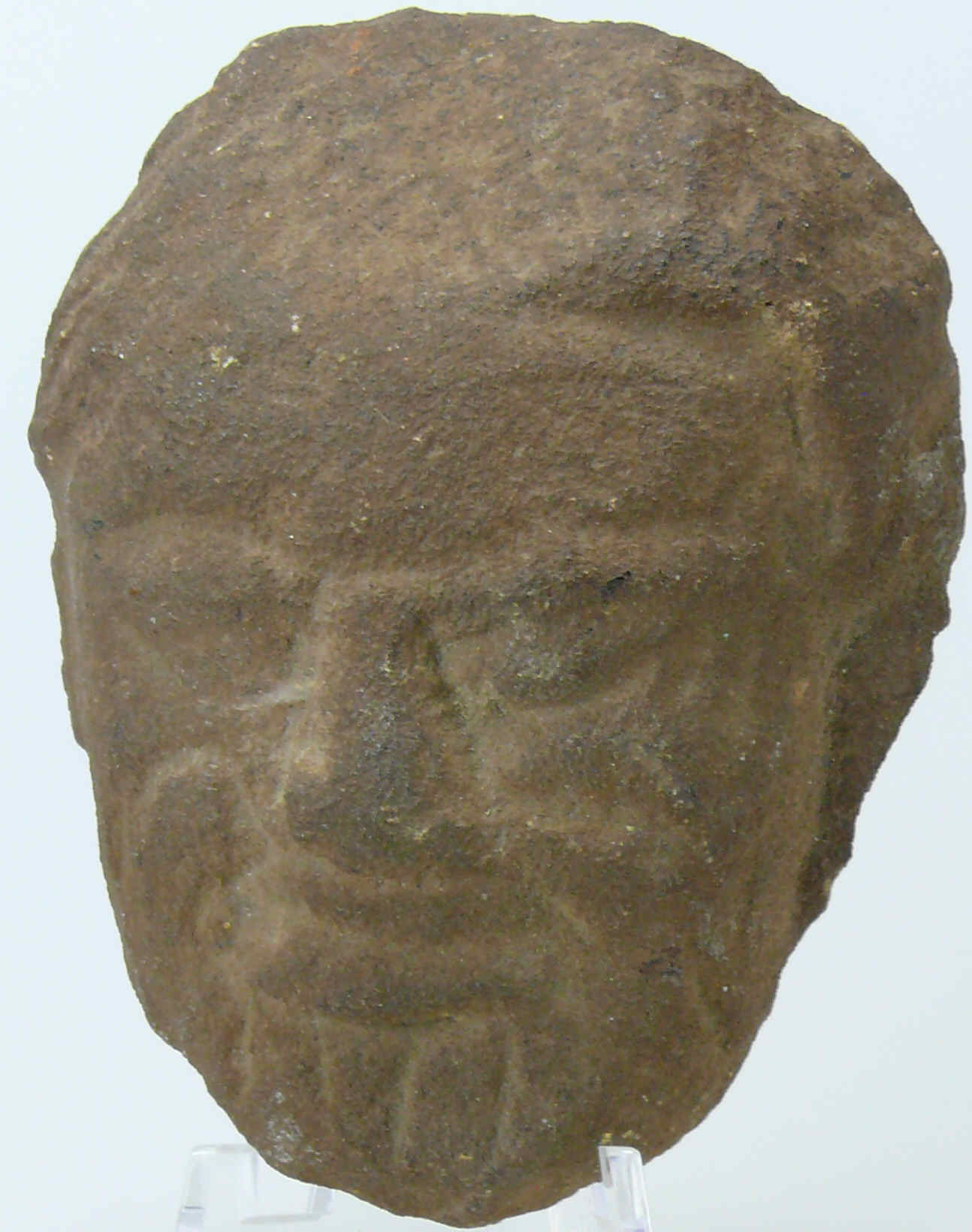 Belle tête en pierre calcaire représentant un visage d’homme . 80 mm.