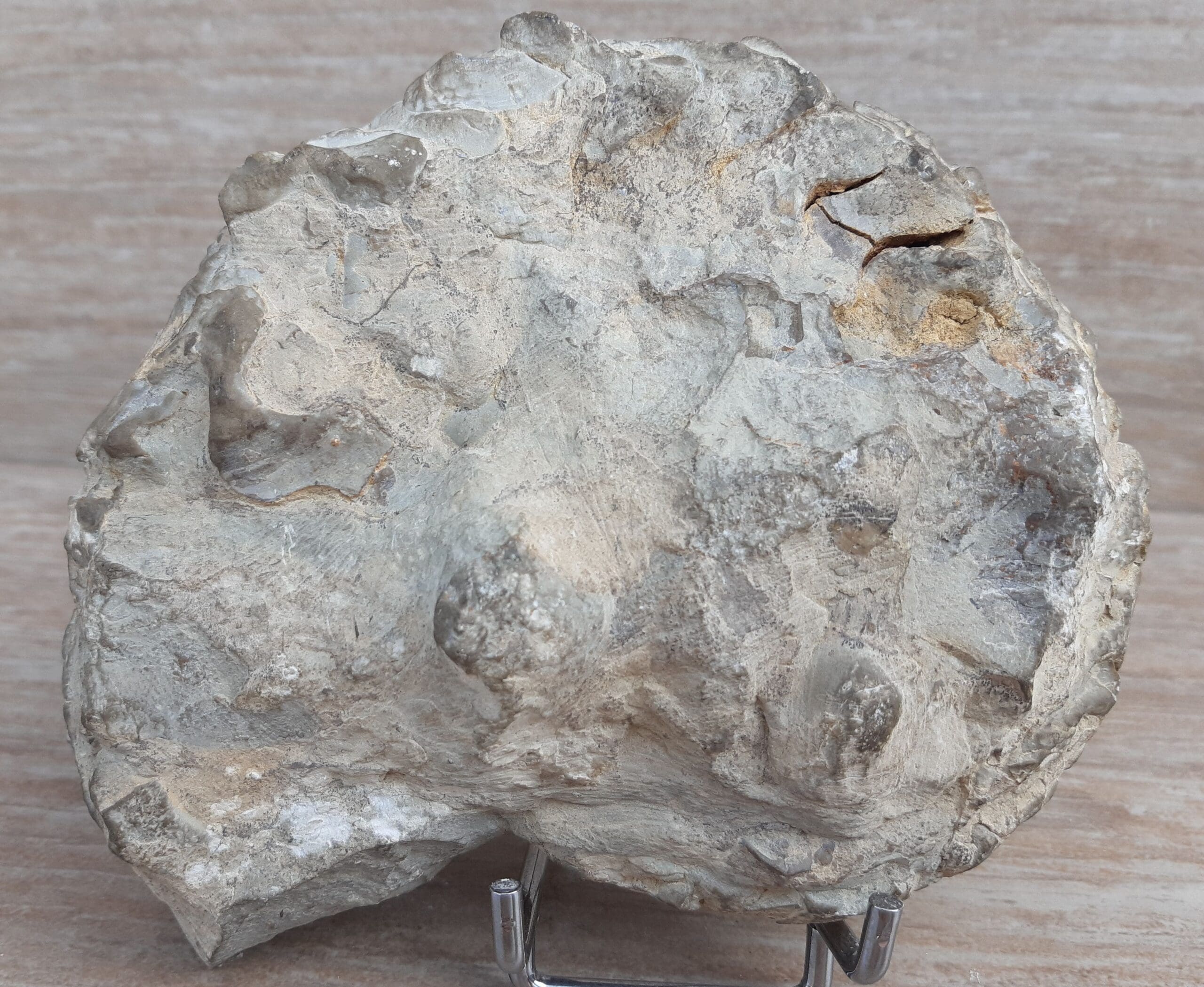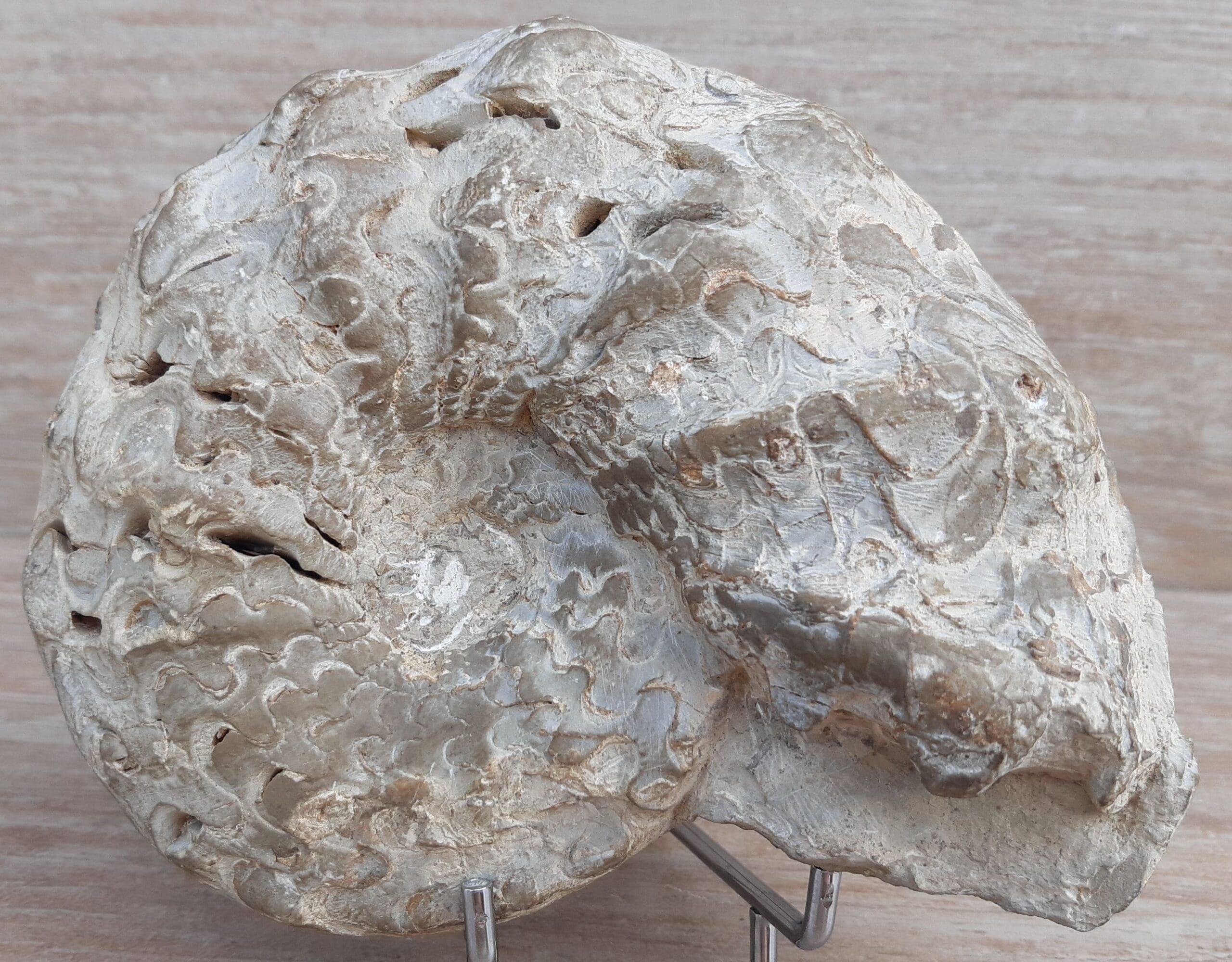 Avers : Ammonite fossilisée piérreuse, bien dégagée avec les cernes de croissance bien visibles. Belle engobe marron clair. Dimensions du bloc : 16x12x7 cm. Poids : 1.46 kgs
