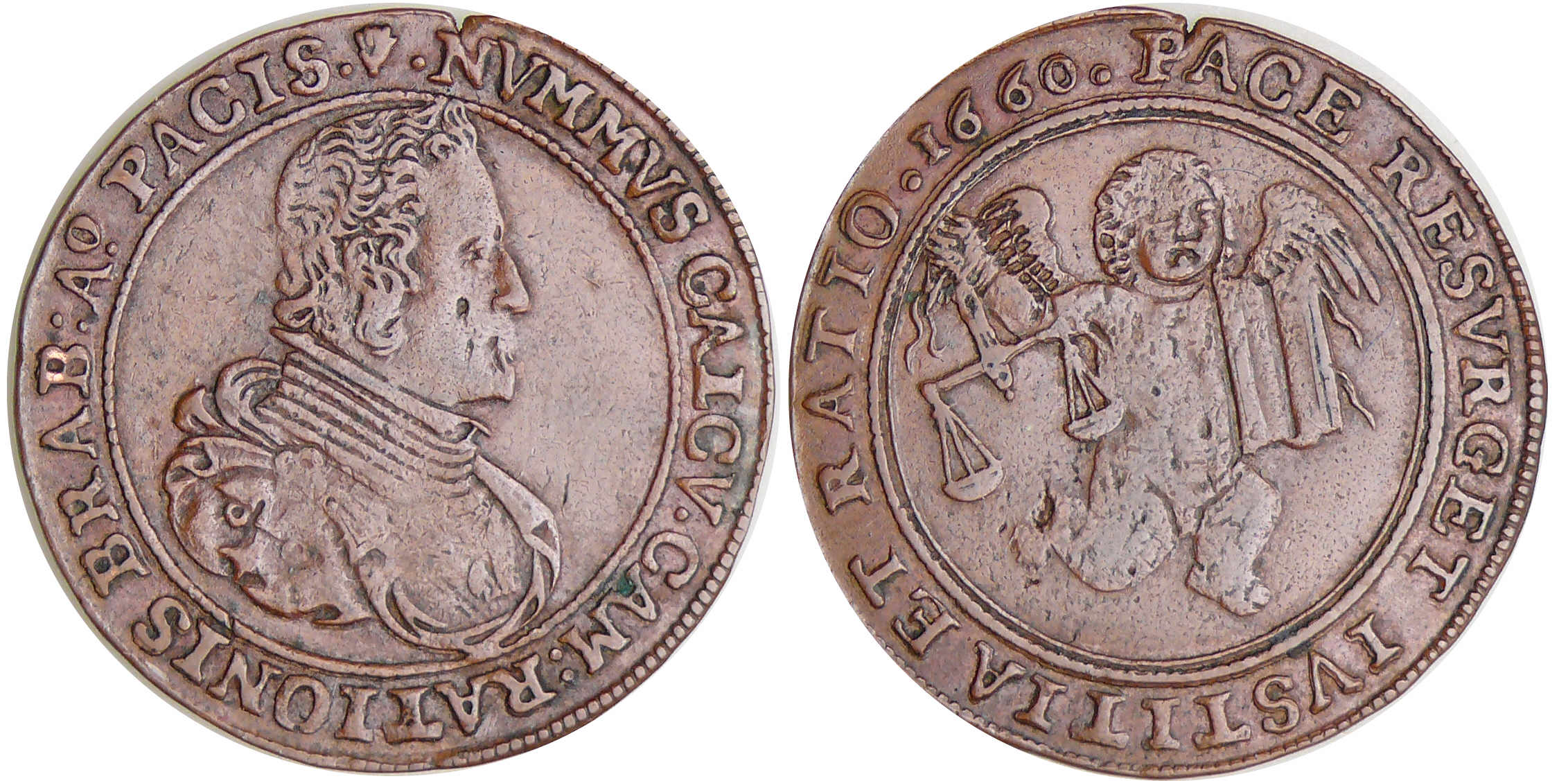 / Pays-Bas espagnol – Philippe IV (1605-1621-1665) – Jeton – Paix des Pyrénées, entre la France et l’Espagne 1660