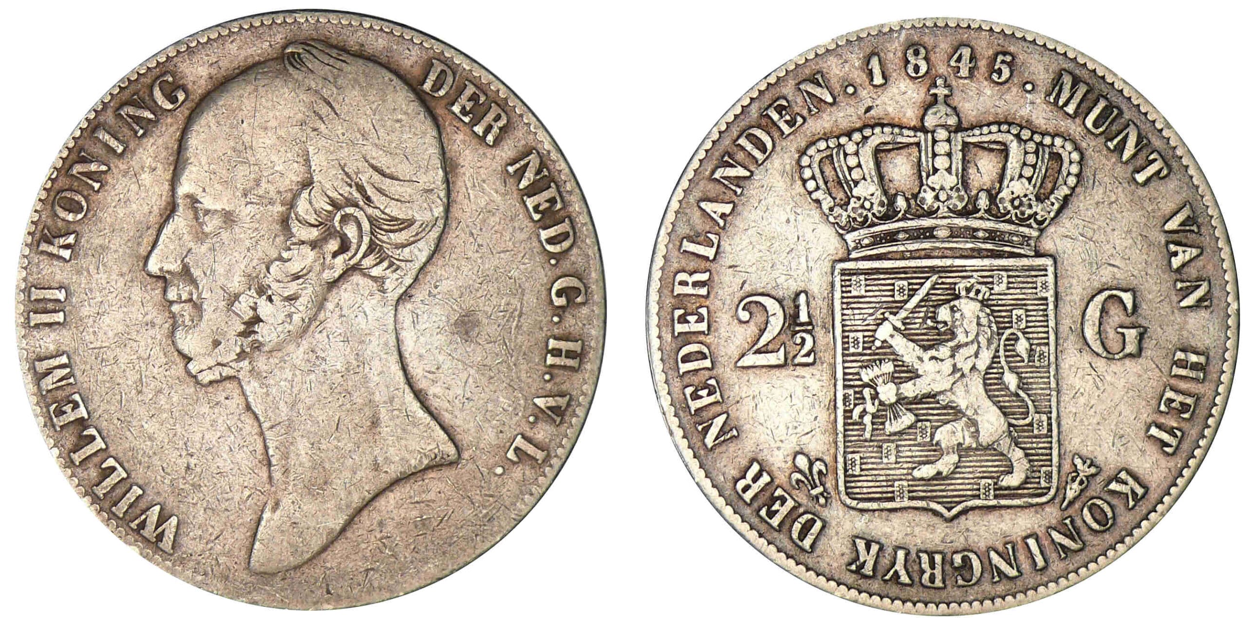 Pays-Bas – Willem II – 2 1/2 gulden 1845