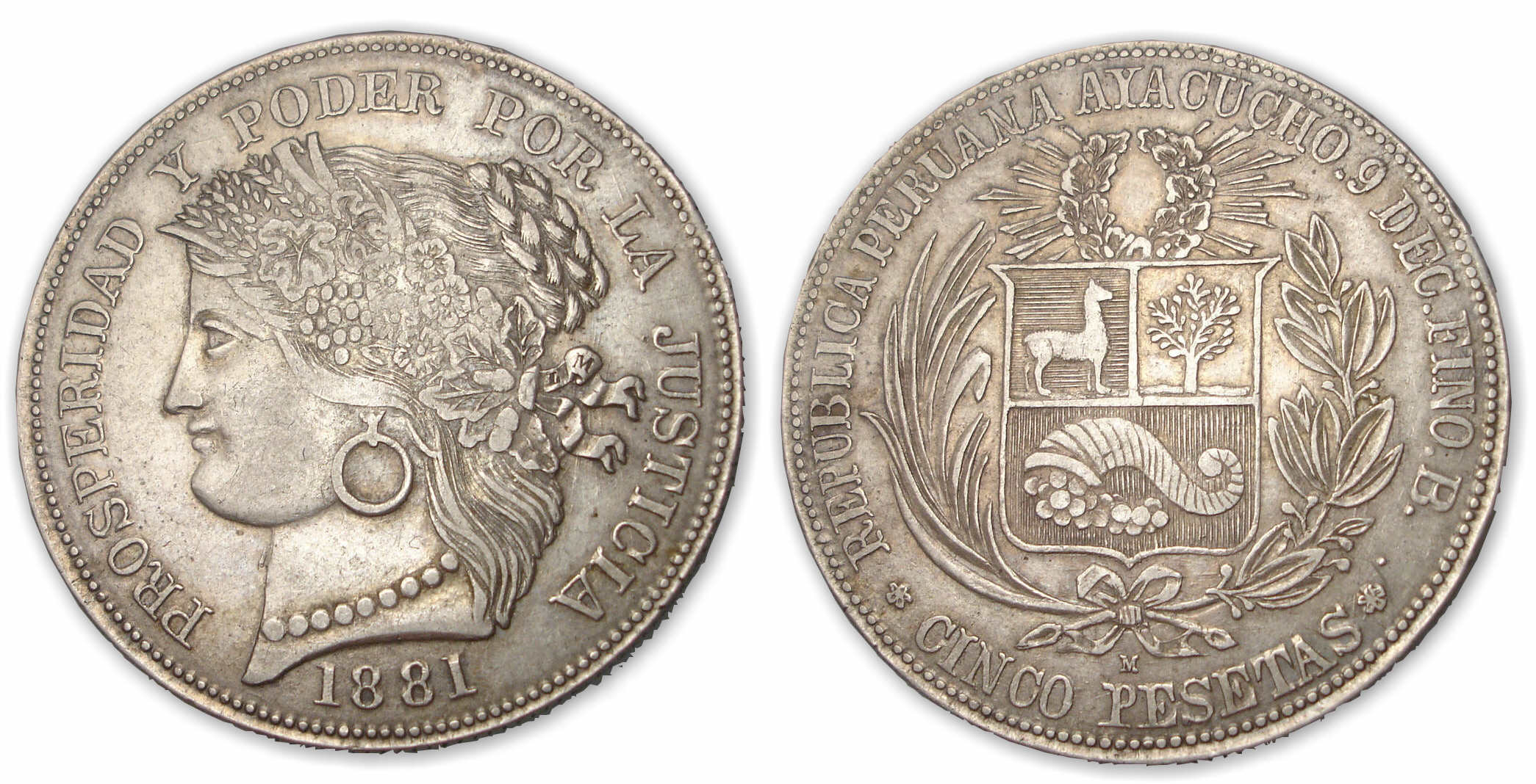 / Pérou – 5 pesetas 1881 Ayacucho