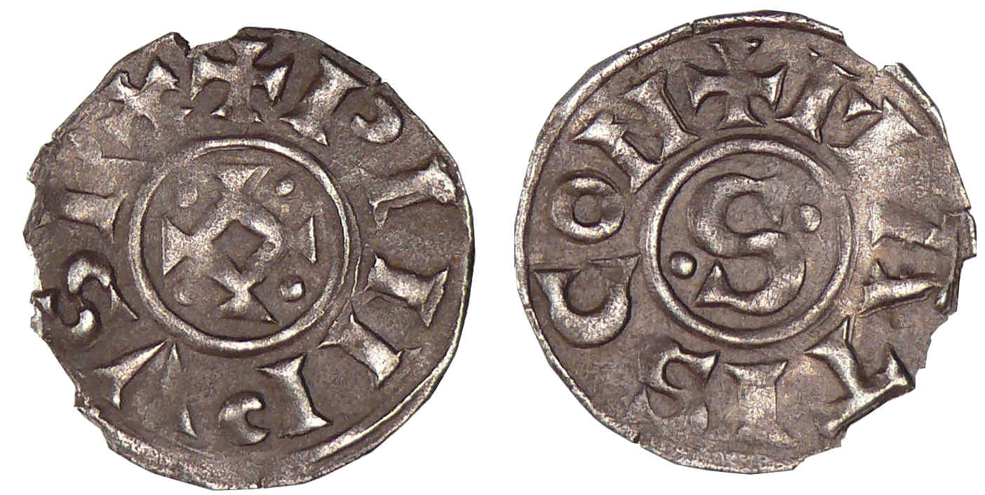 R/ + MATISCON. Grand S accosté de deux globules. Variété au A à l’envers.