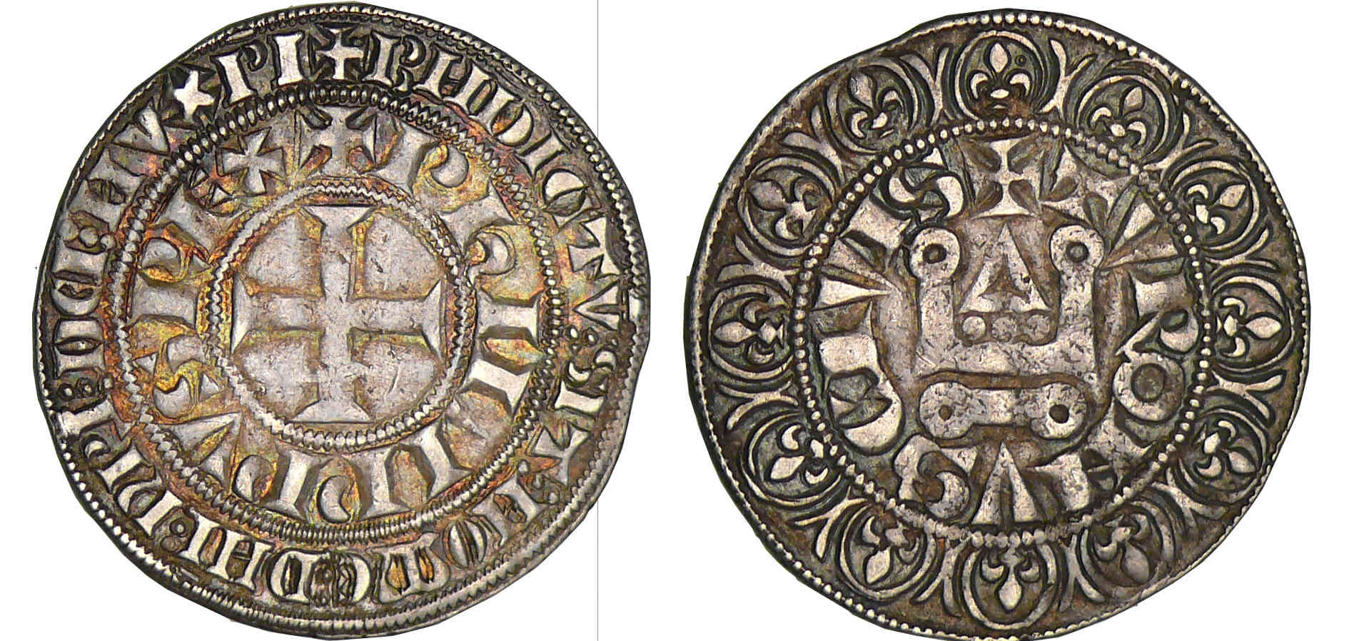 A/ + BNDICTV:SIT: NOmE: DNI: nRI: DEI: IhV. XPI intérieur : PhILIPPVS REX. Croix.