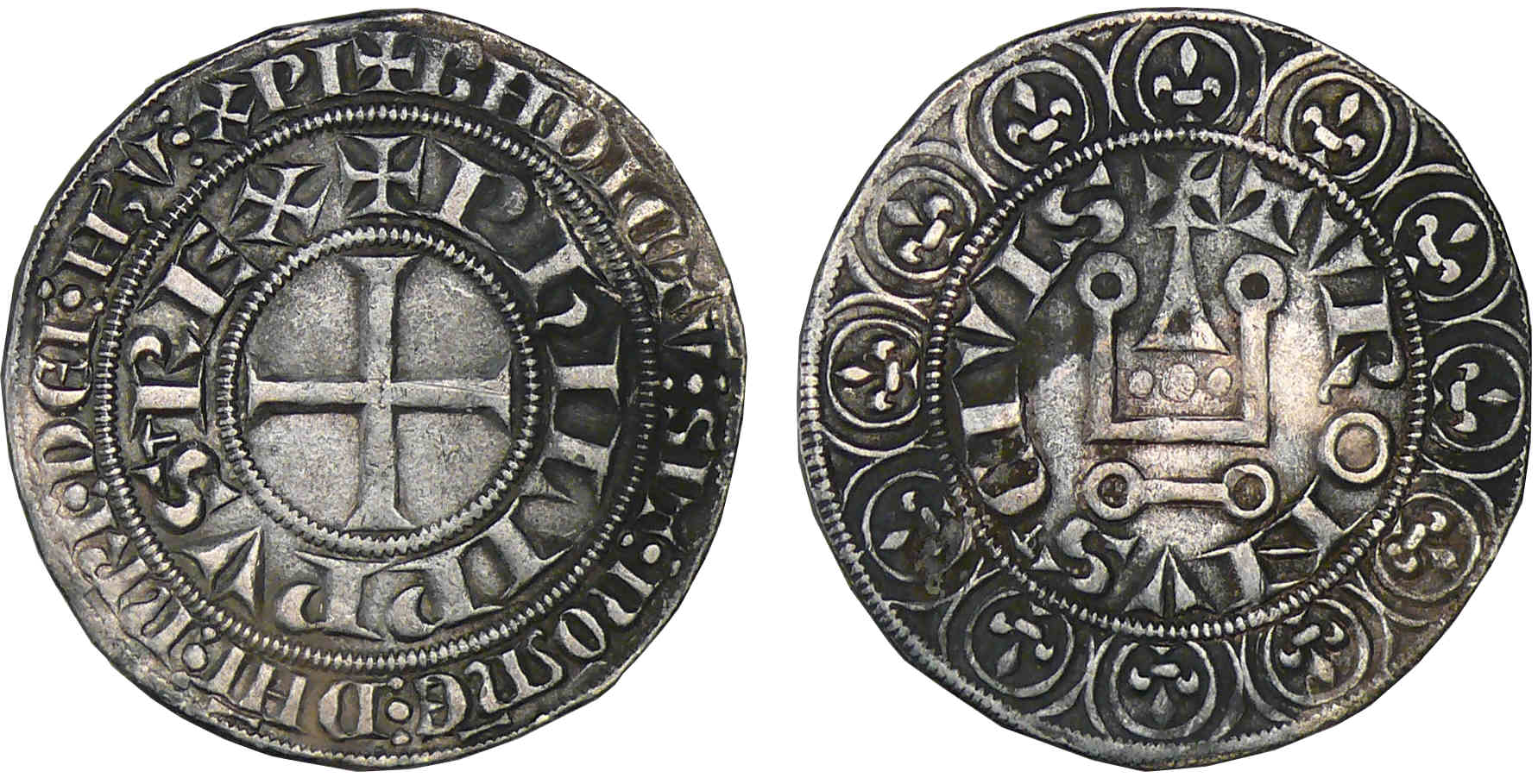 A/ + BNDICTV: SIT: NOmE: DNI: nRI: DEI: IhV. XPI. intérieur : PhILIPPVS (marteau) REX. Croix.