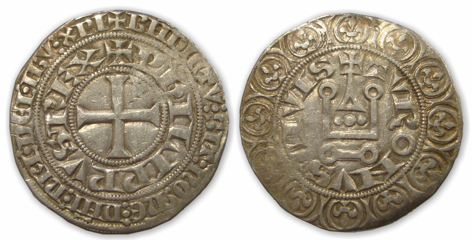 A/ BNDICTV:SIT: NOmE: DNI: nRI: DEI: IhV. XPI intérieur : PhILIPPVS (marteau) REX Croix.