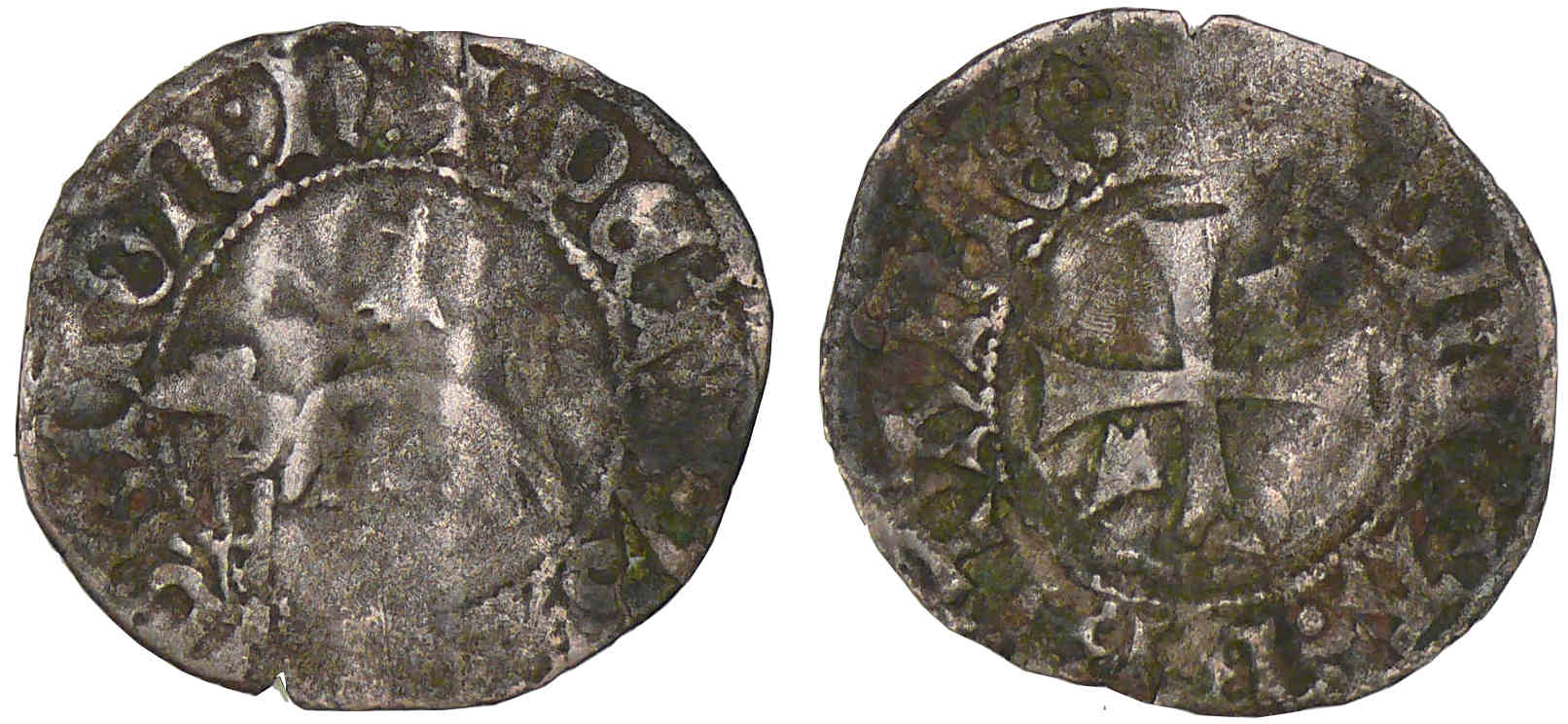 A/ + PaTRVS: DVX: o :BRITon: n: – Hermine enchaînée passant à gauche, une moucheture au-dessus.