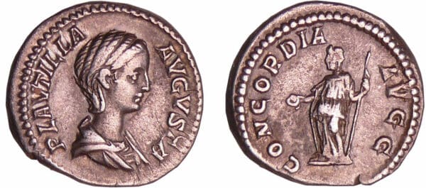 Avers : A/ PLAVTILLA AVGVSTA. Buste nu à droite.