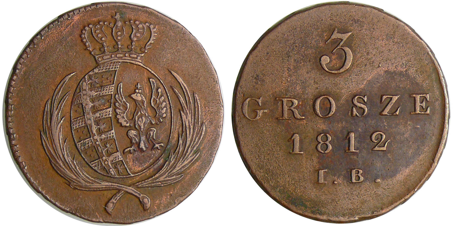 / Pologne – Grand duché de Warsaw – Friedrich August I (1807-1814) – 3 grosze 1812 IB