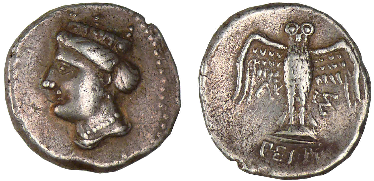 A/ Tête de Tyché à gauche.