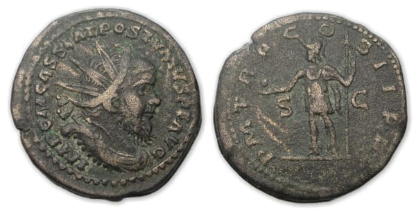/ Postume – Double sesterce (261, Cologne) Postume en habit militaire