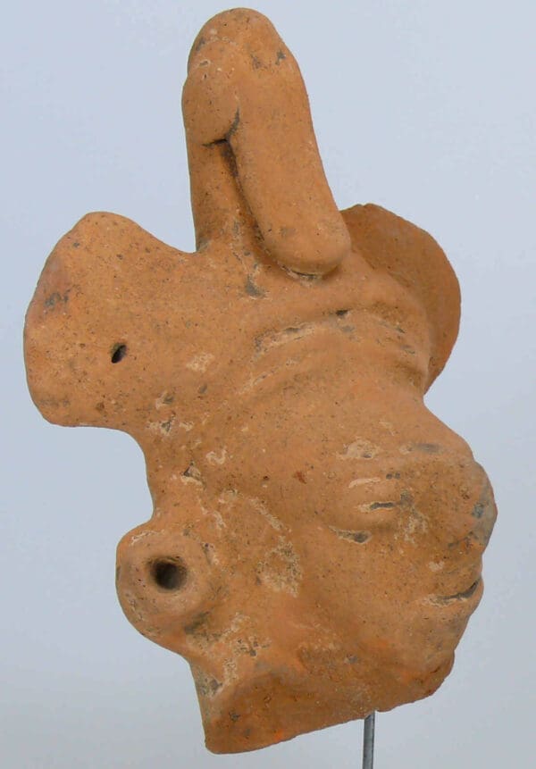 Petite tête en terre cuite représentant un visage d’homme. 50 mm.