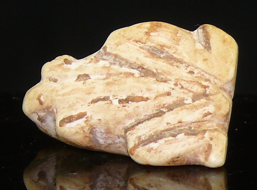 Perle en calcite représentant une grenouille. Dimension : 30 mm.