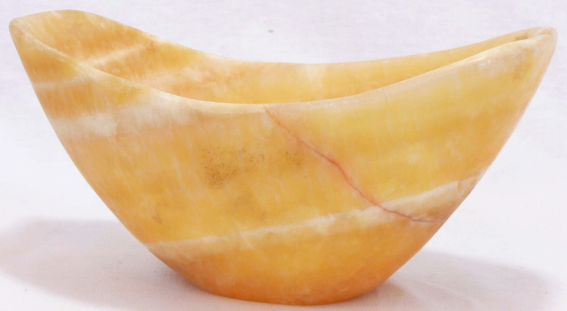 Importante coupe navicelle en albâtre veinée et poli. Dimensions : 200×95 mm.