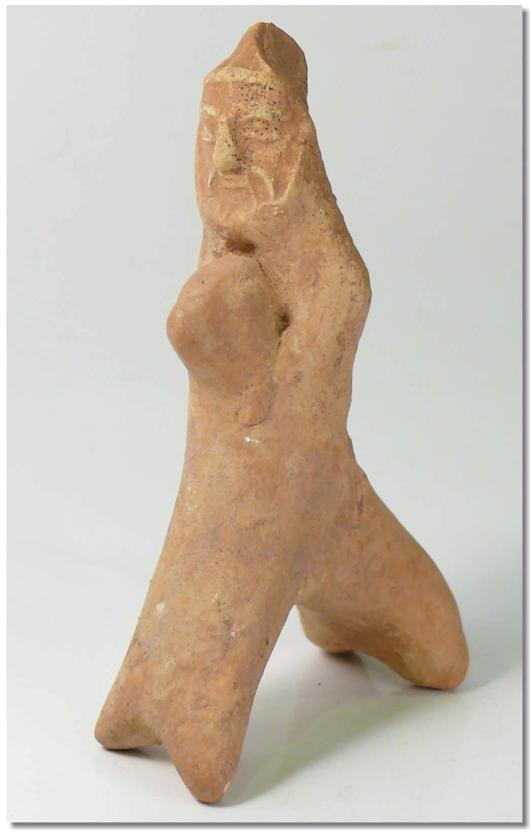 Avers : Statuette équestre en terre cuite de couleur beige. Fine représentation du visage du cavalier – 85×45 mm.