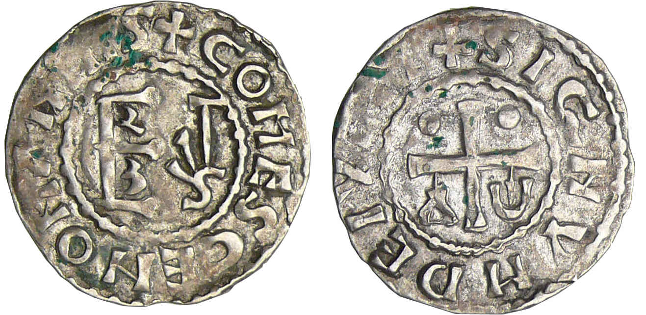 Herbert 1er (1015-1036). A/ + COMES CENOMANNIS. Monogramme d’Herbert.
