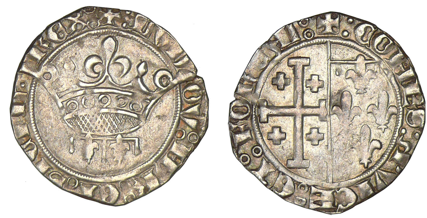 Louis II d’Anjou (1384-1417. A/ + LVDOV IHR ET SICIL REX. Grande couronne. Dessous, un lambel.