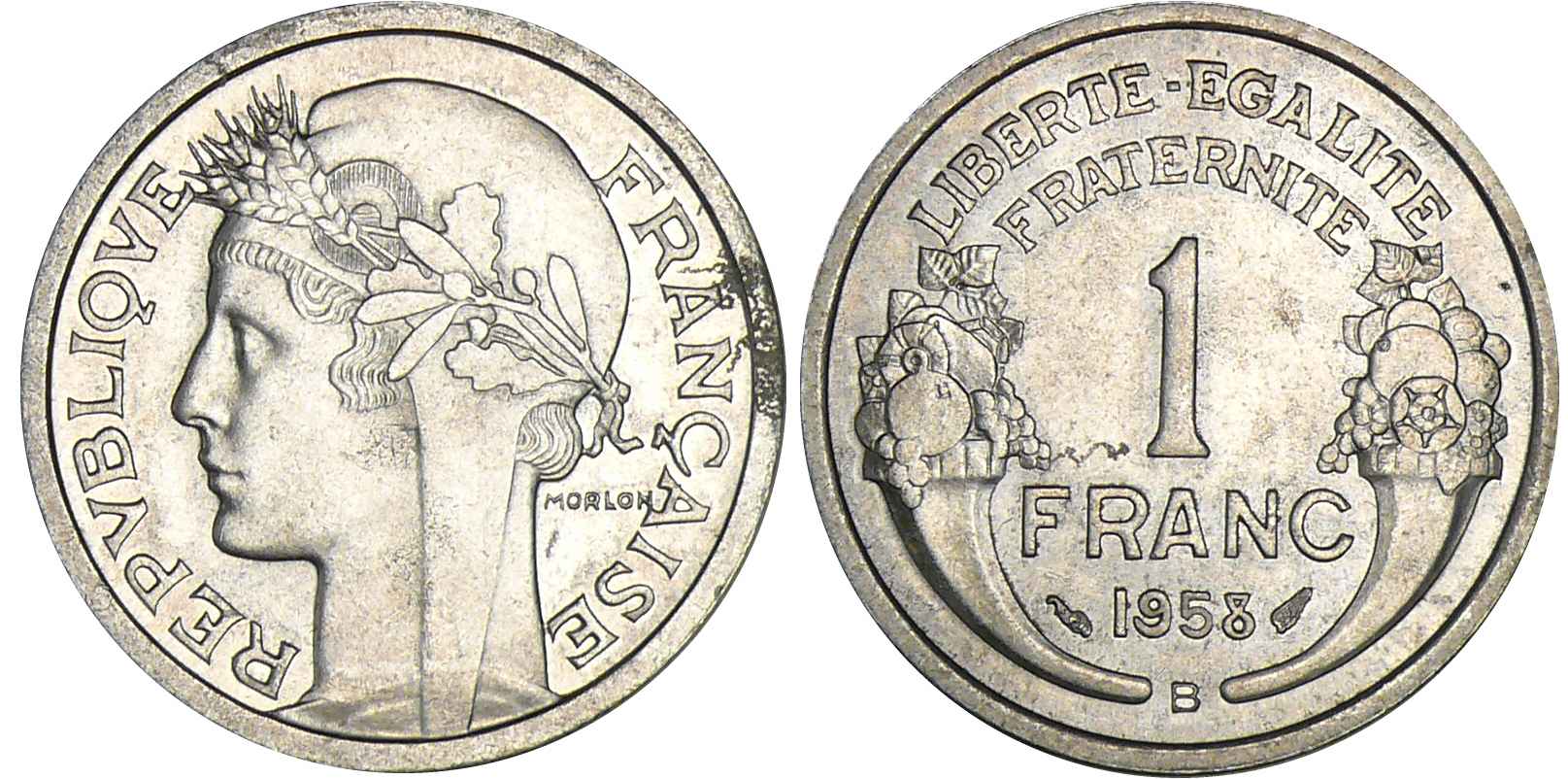 Quatrième république (1947-1959) – 1 franc Morlon aluminium 1958 B (Beaumont-le-Roger)