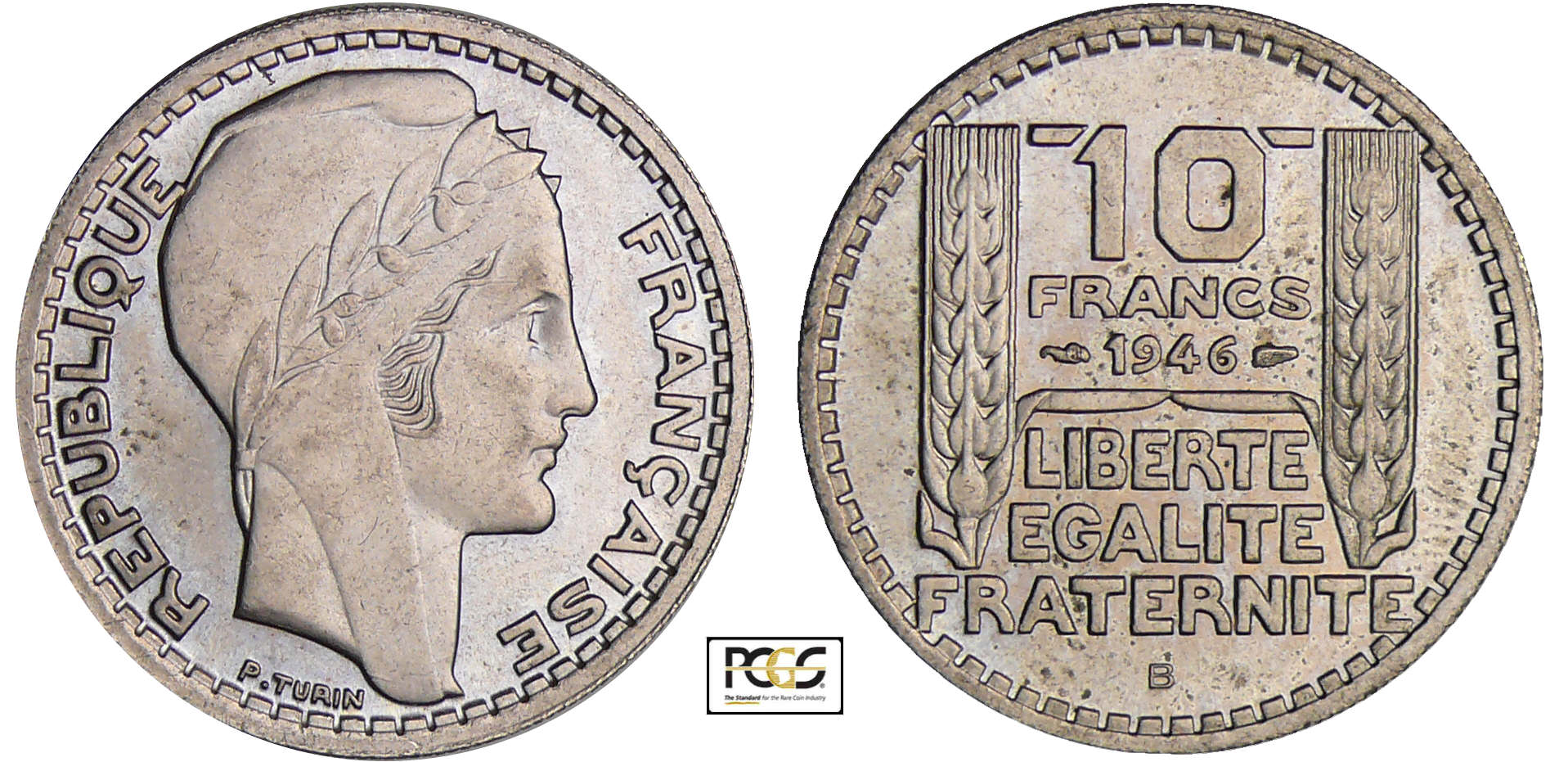 Quatrième république (1947-1959) – 10 francs Turin à la grosse tête 1946 B rameaux courts