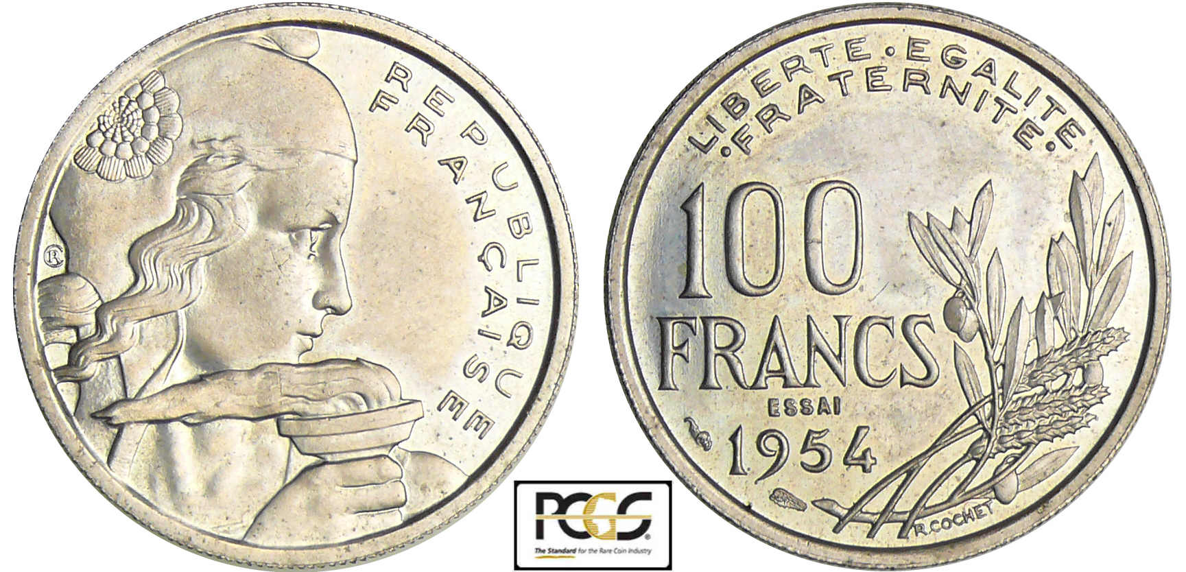 Quatrième république (1947-1959) – 100 francs Cochet 1954 essai