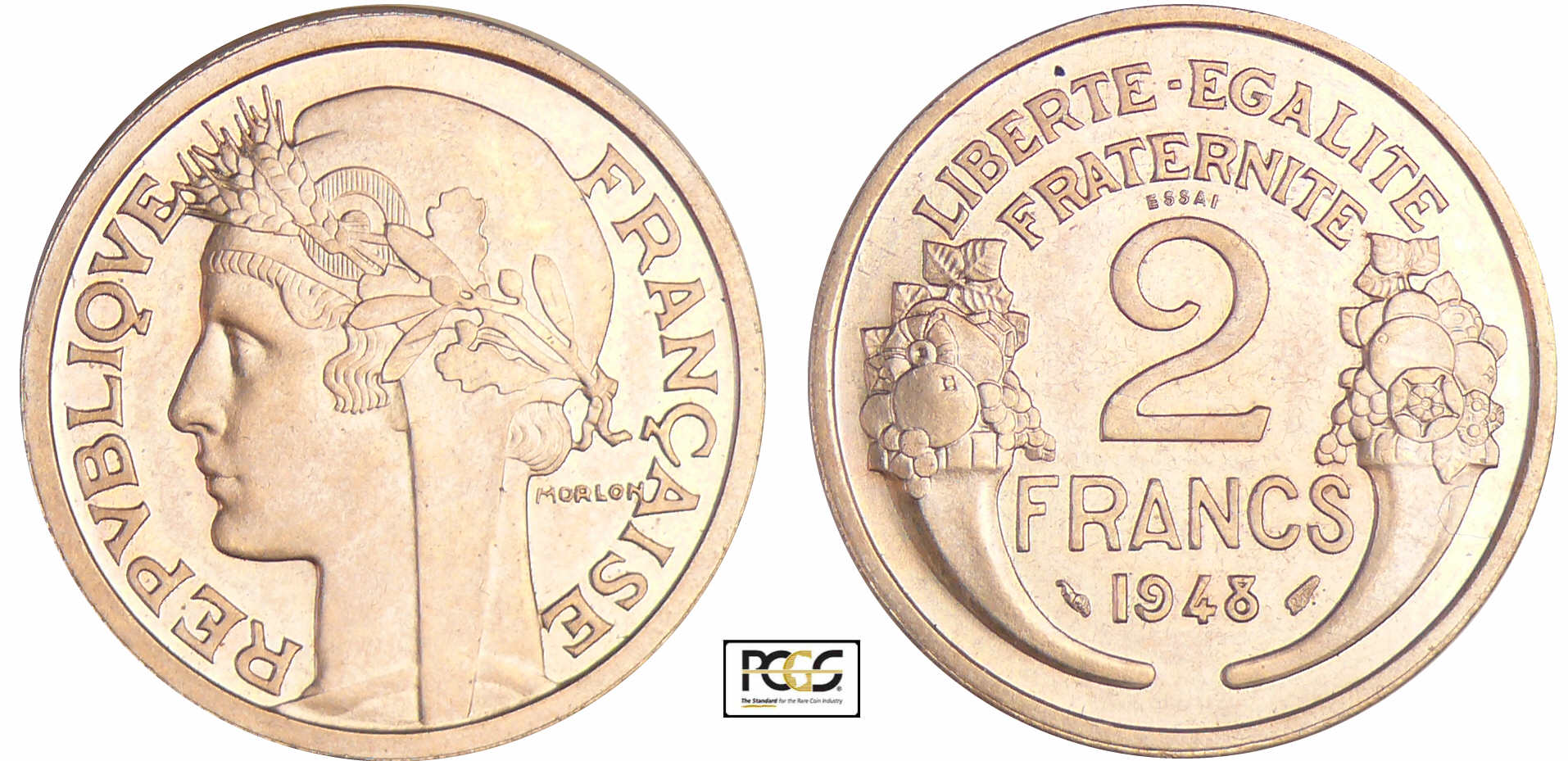 / Quatrième république (1947-1959) – 2 francs Morlon 1948 essai