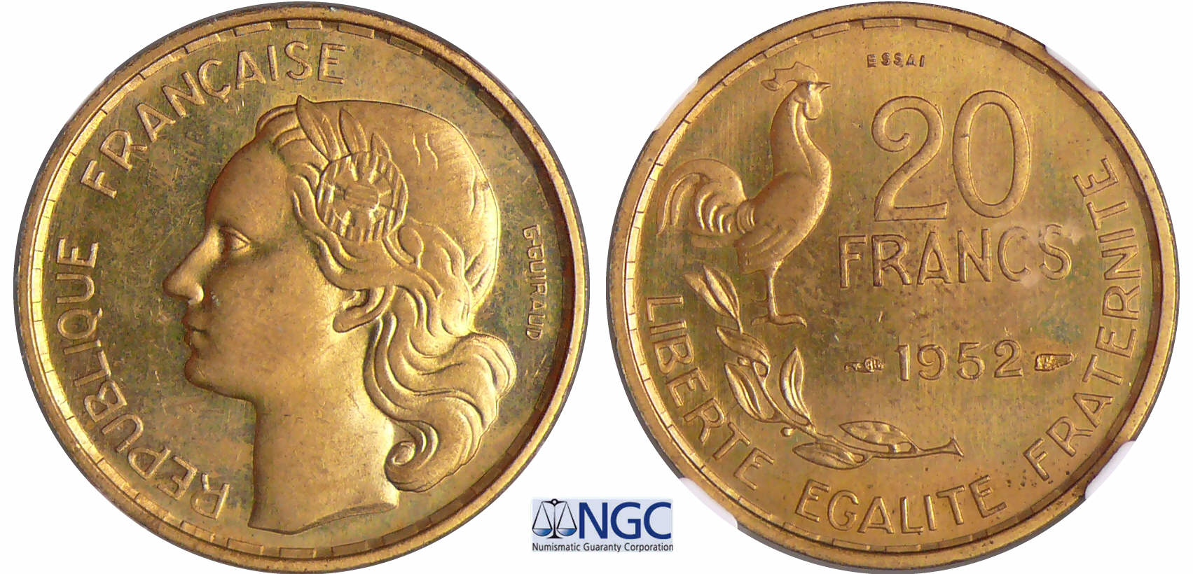 Quatrième république (1947-1959) – 20 francs G. Guiraud 1952 essai piéfort