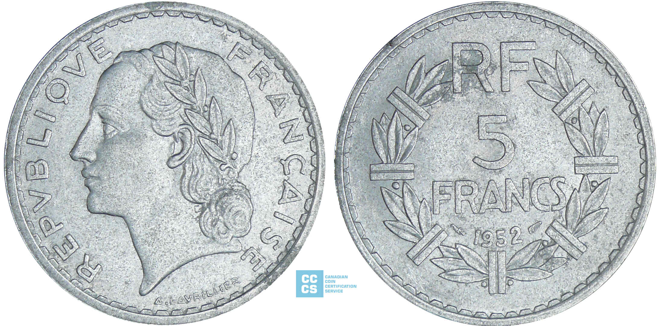 Quatrième République (1947-1959) – 5 francs Lavrillier aluminium 1952