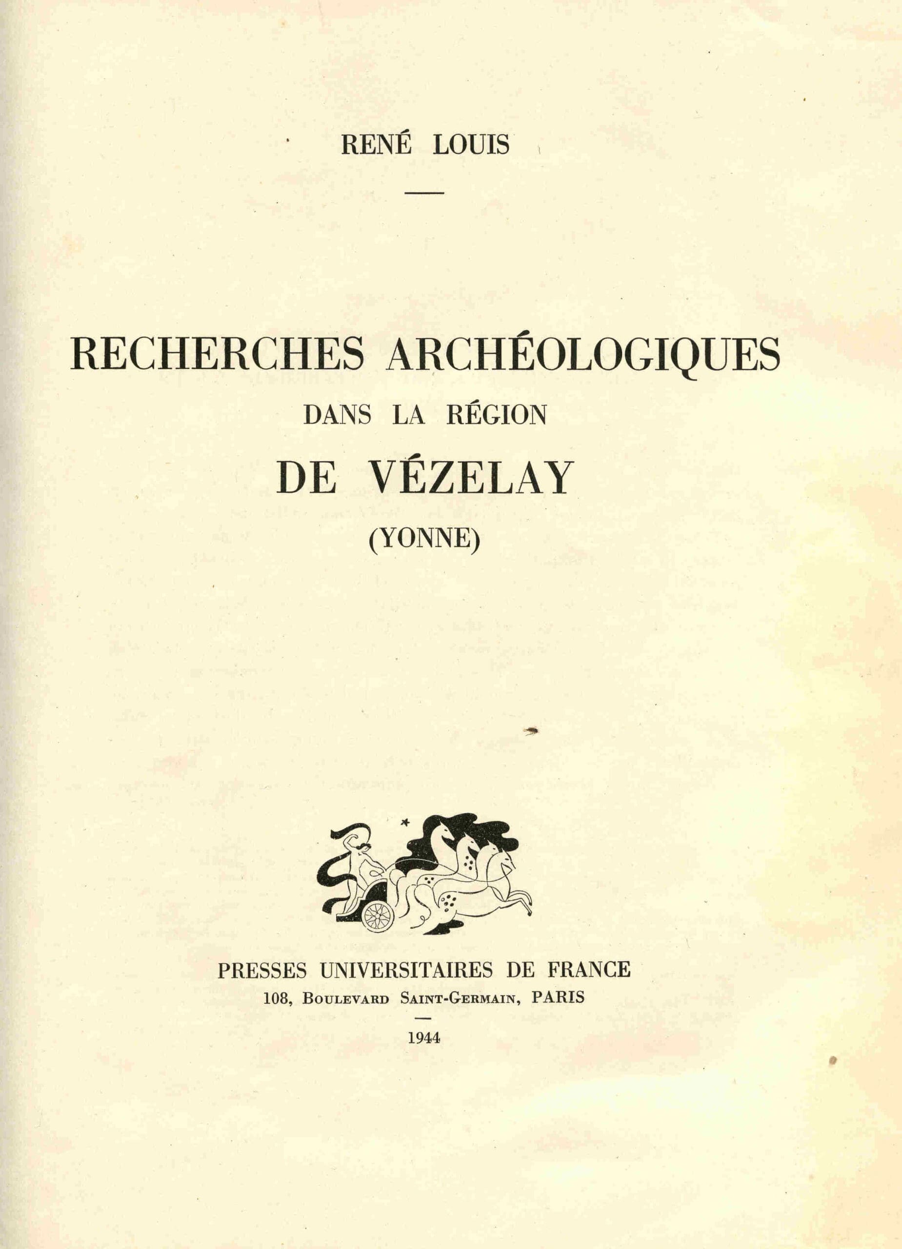 / Recherches archéologiques dans la région de Vézelay – René Louis – 1944