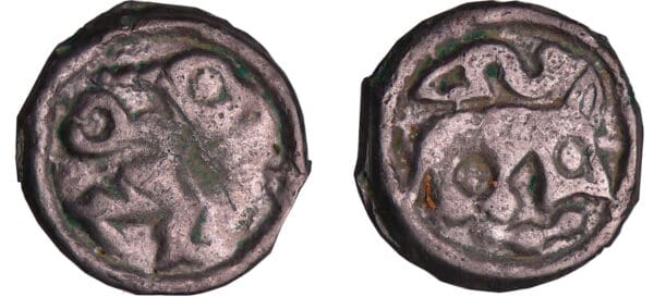 / Rèmes – Potin au guerrier courant et à l’élan (60-40 av. J.-C.)