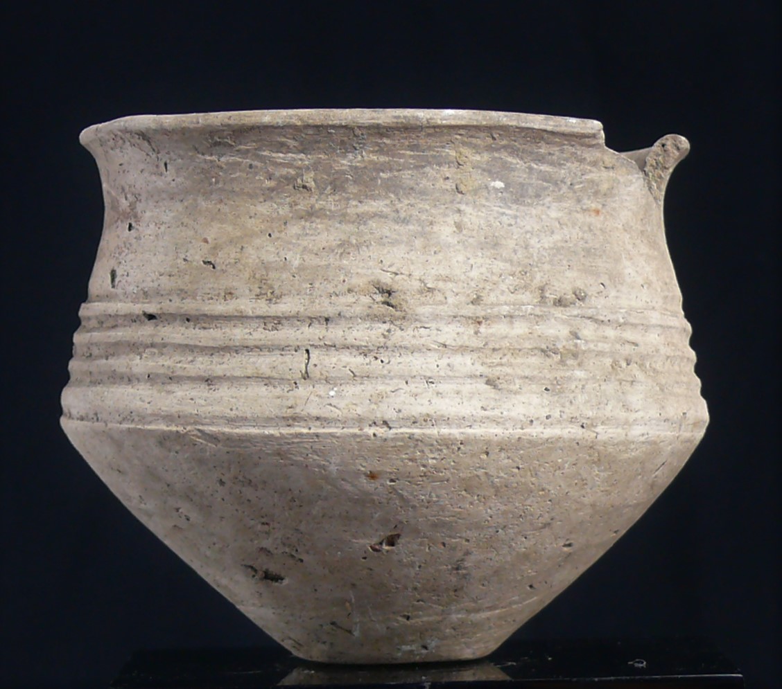 Bol en terre cuite blanche. Le bord du col est ébrêché. Dimensions : 90 * 100 mm.
