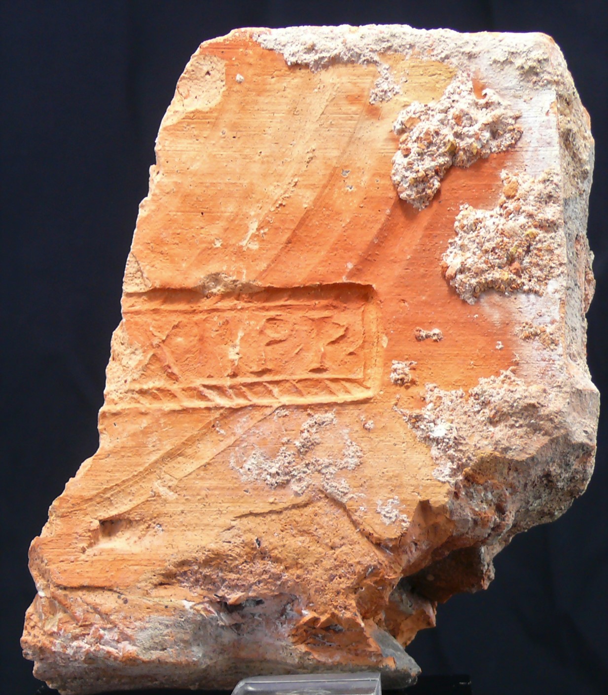 Avers : Brique de la Légion XXII PP = Primigenia Pia Felix (« la première loyale et fidèle »). Cette légion a stationné à Mayence. Dimensions : 190*140*60 mm.