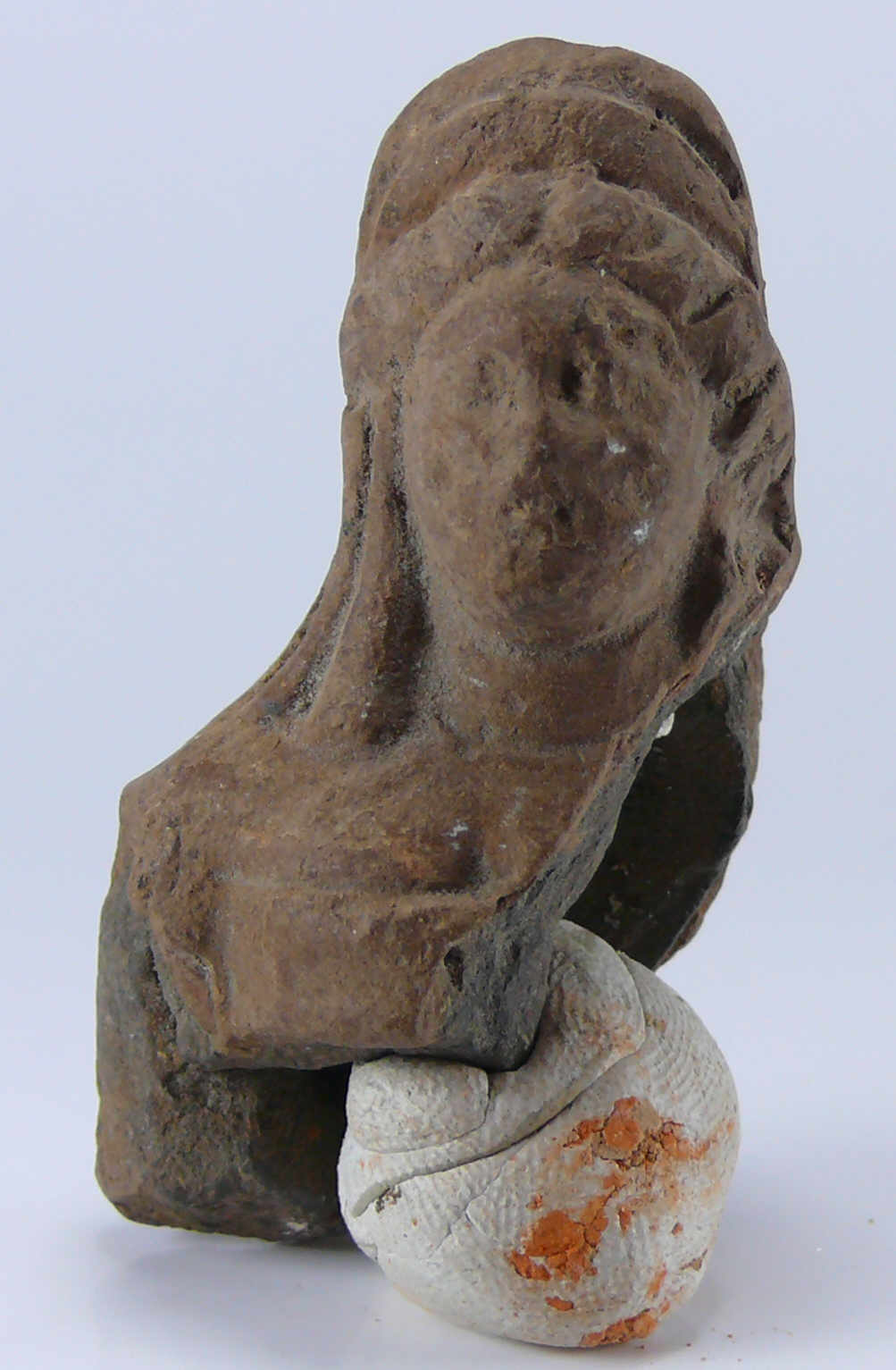 Buste en terre cuite représentant une femme coiffée. 58 mm.