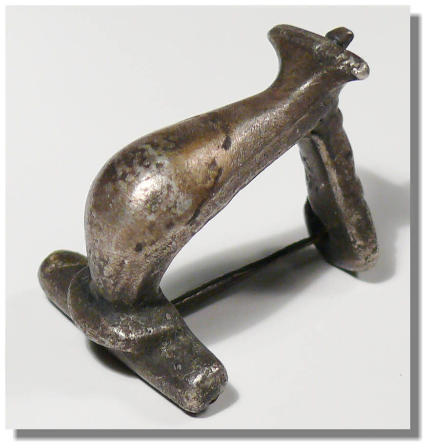 Très rare fibule delfiniphorme en argent avec son hardillon – 32×25 mm.