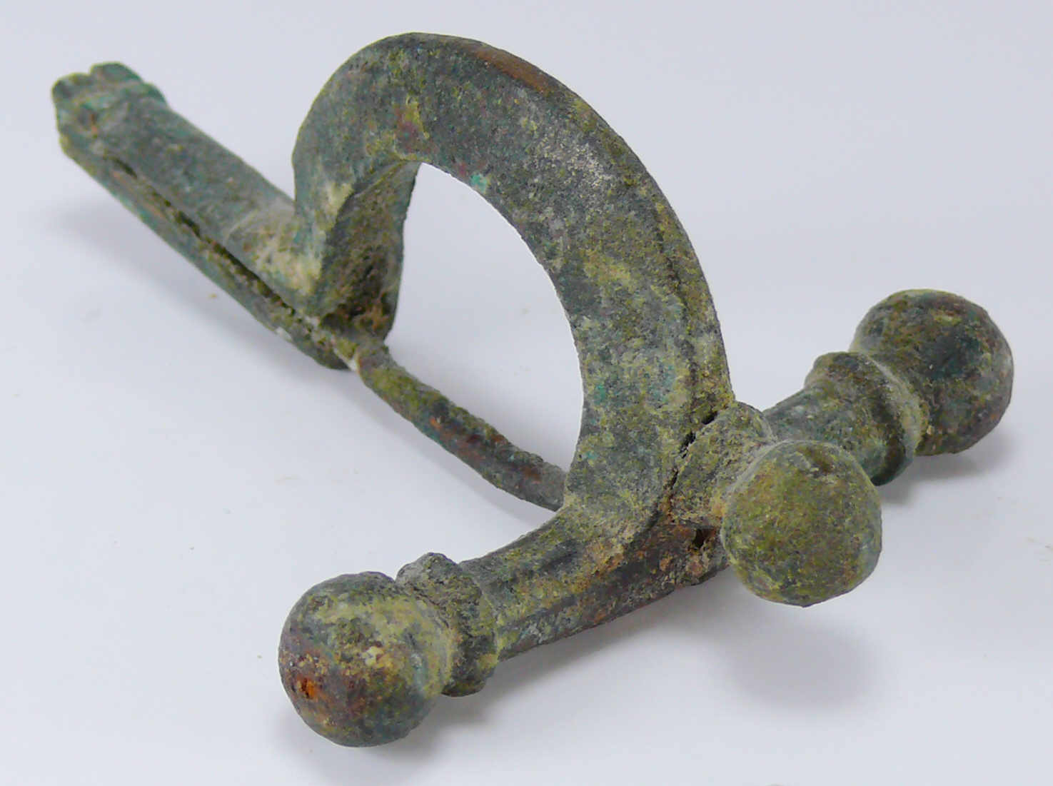 Avers : Fibule cruciforme en bronze ayant encore son hardillon. 70 mm.