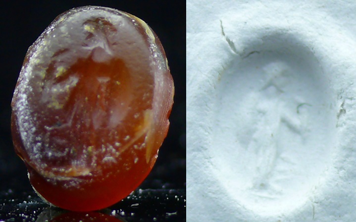 Intaille en cornaline dont l’empreinte représente une Victoire ailée. 11*8 mm