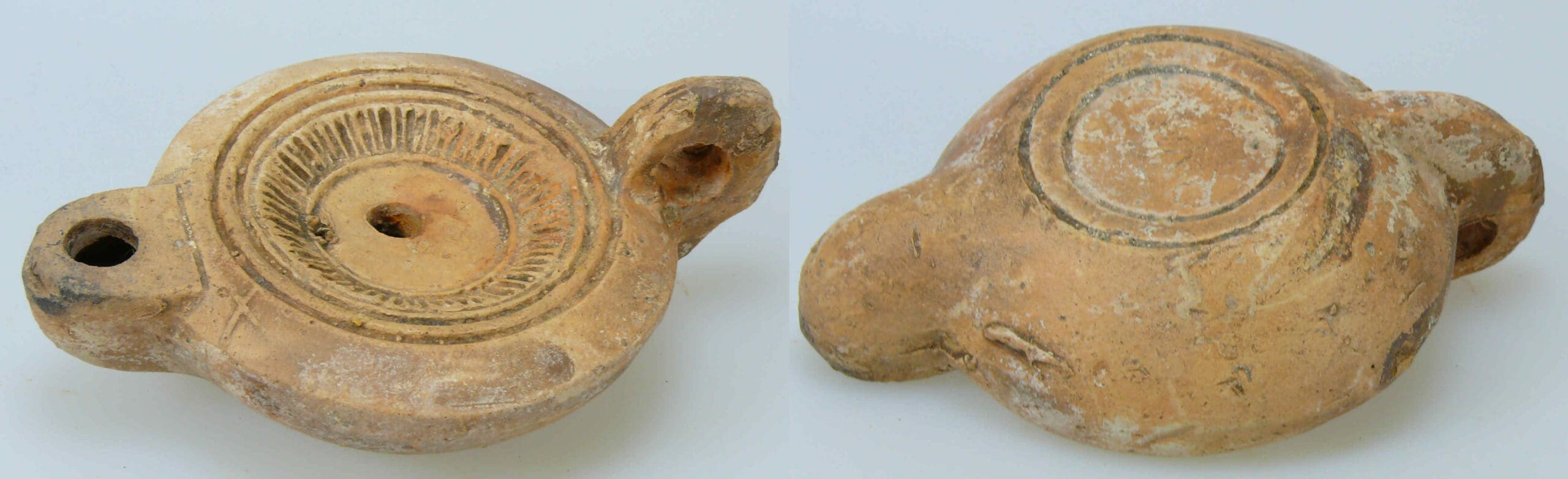 / Romain – Lampe à huile en terre cuite – Rayonnement – 2ème-3ème siècle