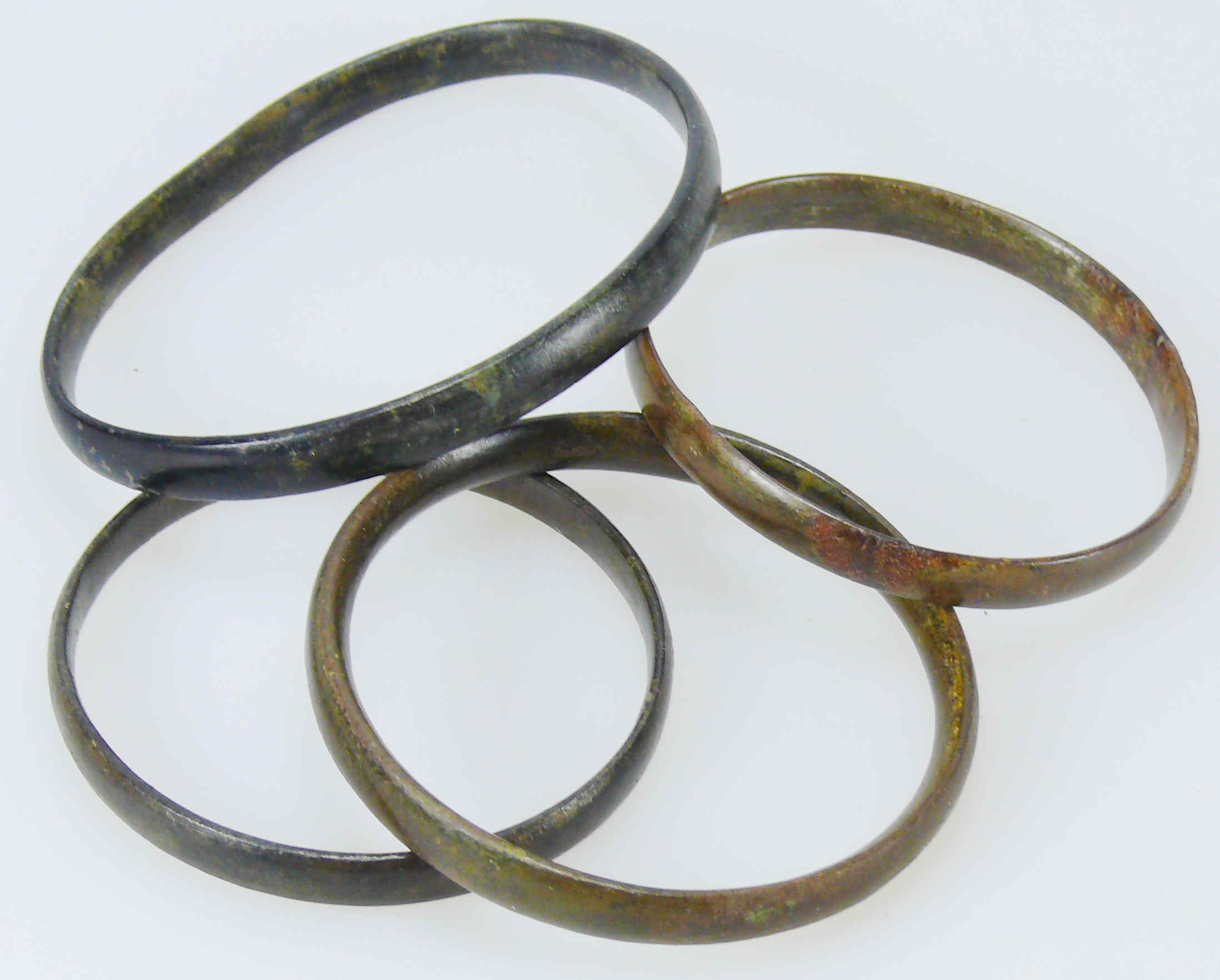 Lot de 4 bracelets en bronze à la patine foncée de 80 à 70 mm.
