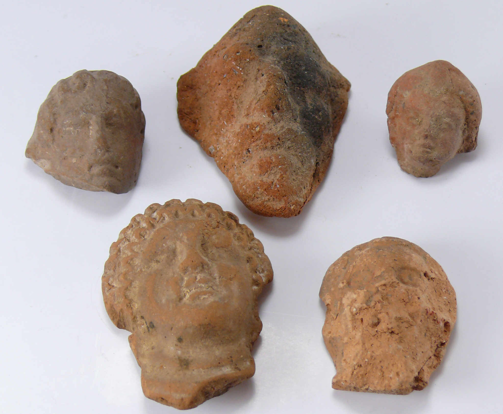 Romain – Lot de 5 têtes en terre cuite – 1er-3ème siècle