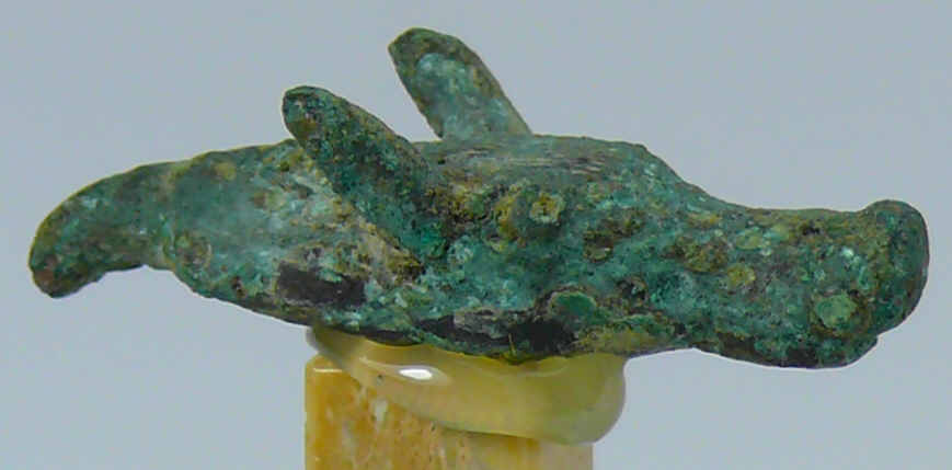 Très fine tête de loup. Dimensions : 32×12 mm. Peur-être un manche de simpulum.