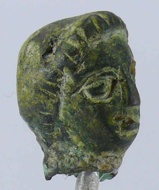 Avers : Petite tête en bronze représentant une femme coiffée. 28 mm.
