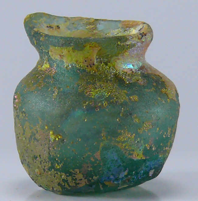 Vase à onguents en verre irisé. 22 mm.