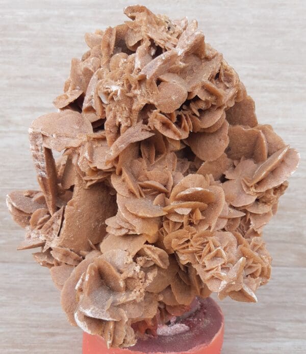 Avers : Grande rose des sables (gypse),roche évaporitique formée par la cristallisation lenticulaire de minéraux solubles. Dimensions du bloc : 20x18x18 cm. Poids : 3.55 kgs