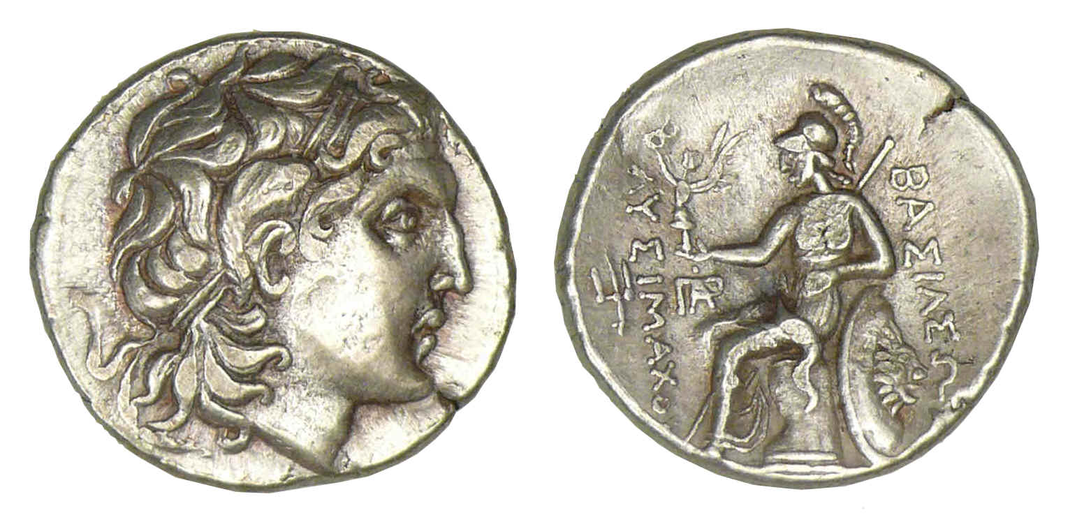 R/ ΒΑΣΙΛΕΩΣ // ΛΥΣΙΜΑΧΟΥ. Athéna nicéphore assise à gauche sur un trône, tenant une petite Niké.