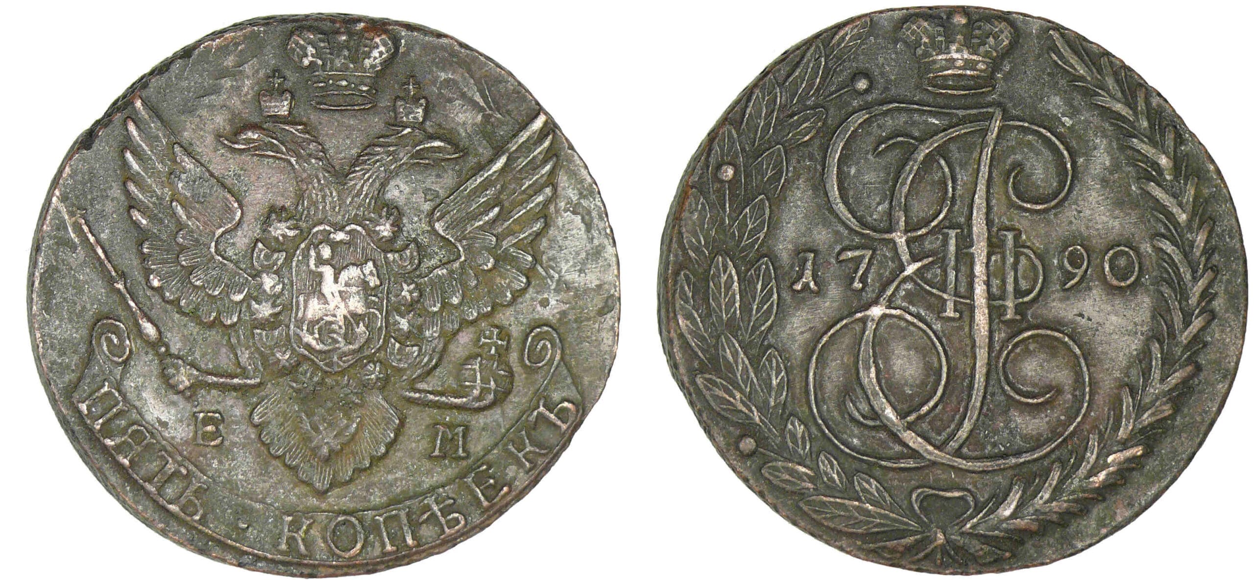 / Russie – Catherine II la Grande – 5 kopecks 1790 EM