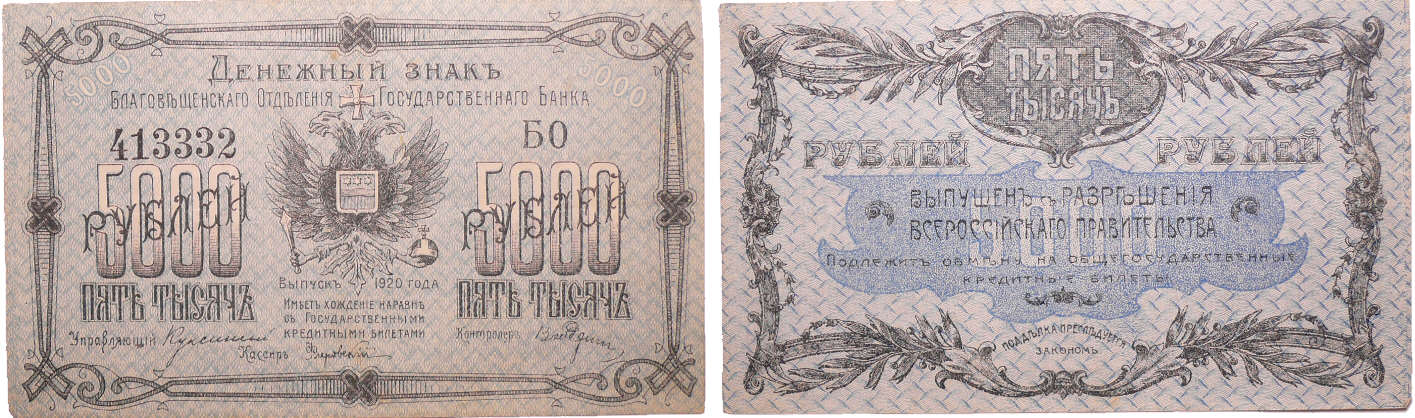 / Russie – East Siberia, Blagoveshchensk – 5000 roubles (1920)