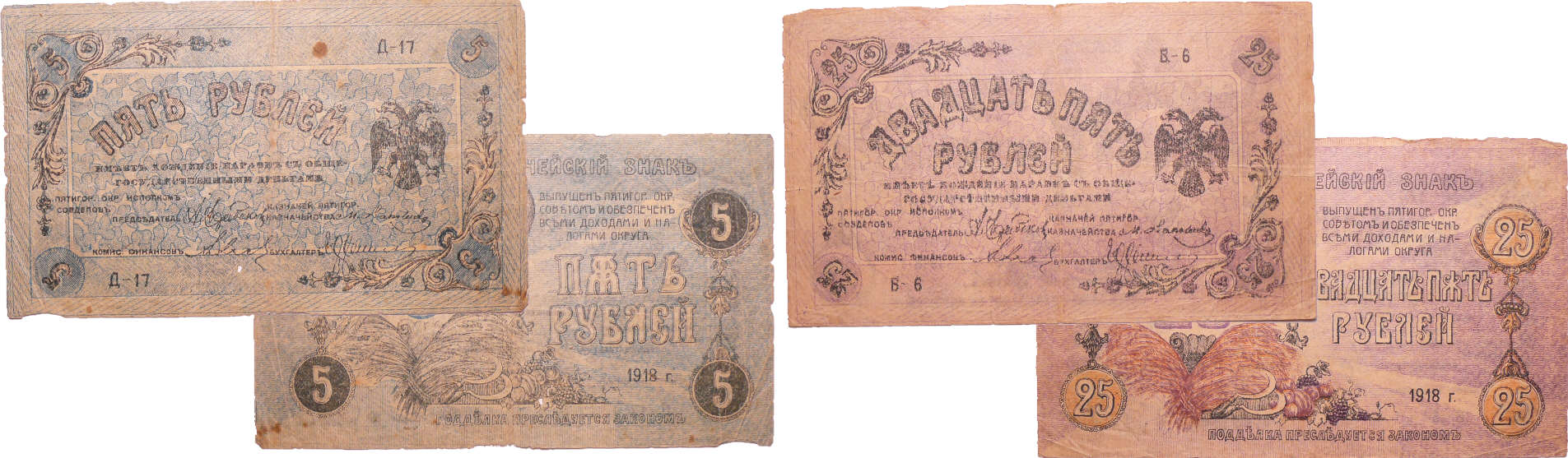 / Russie – East Siberia, Treasury Token – Lot de 2 bikllets, 10 roubles, 25 roubles (1918)