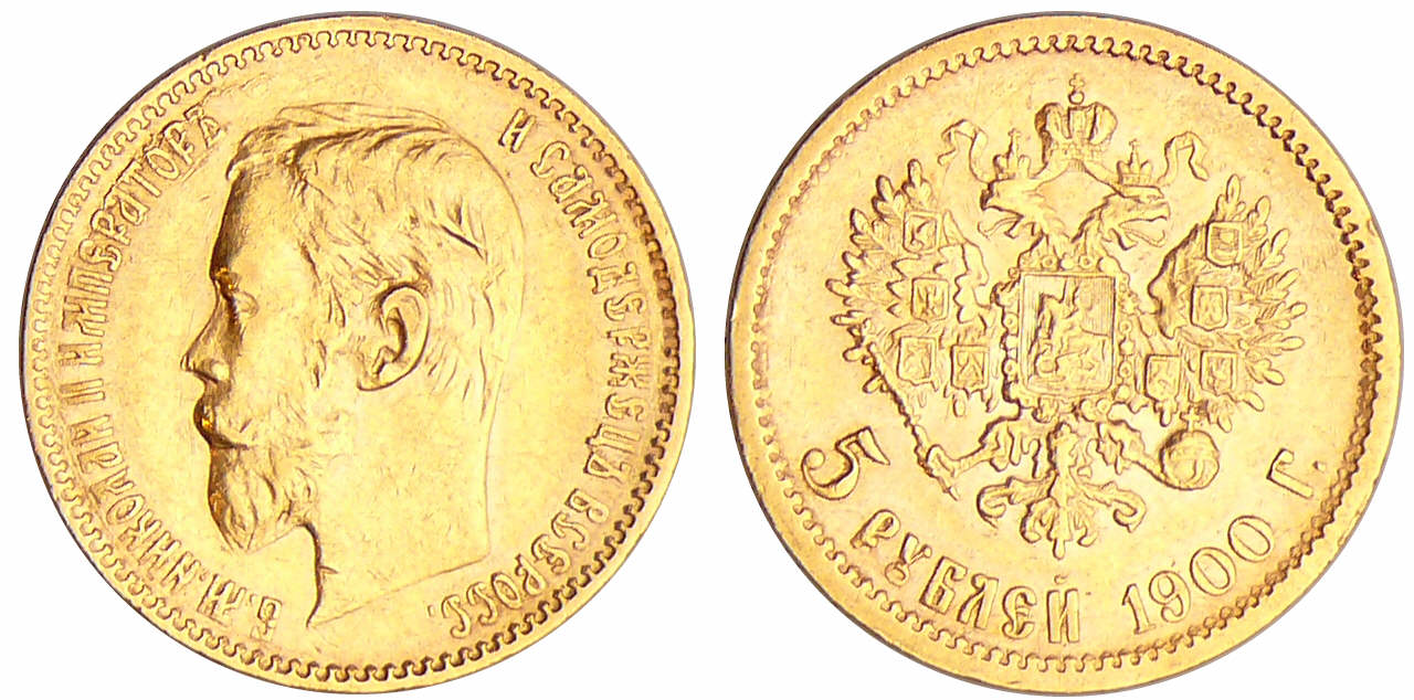 Russie – Nicolas II (1894-1917) – 5 roubles 1900 AΓ (Saint-Pétersbourg)