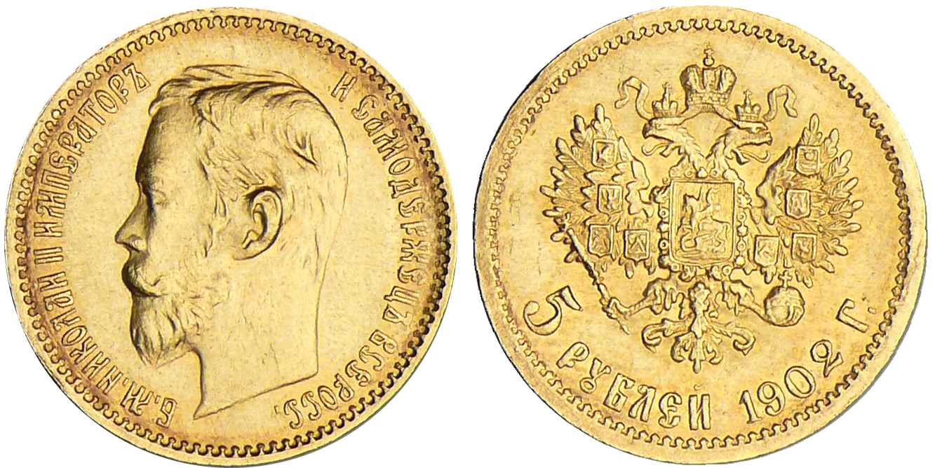 Russie – Nicolas II – 5 roubles 1902 AΓ (Saint-Pétersbourg)