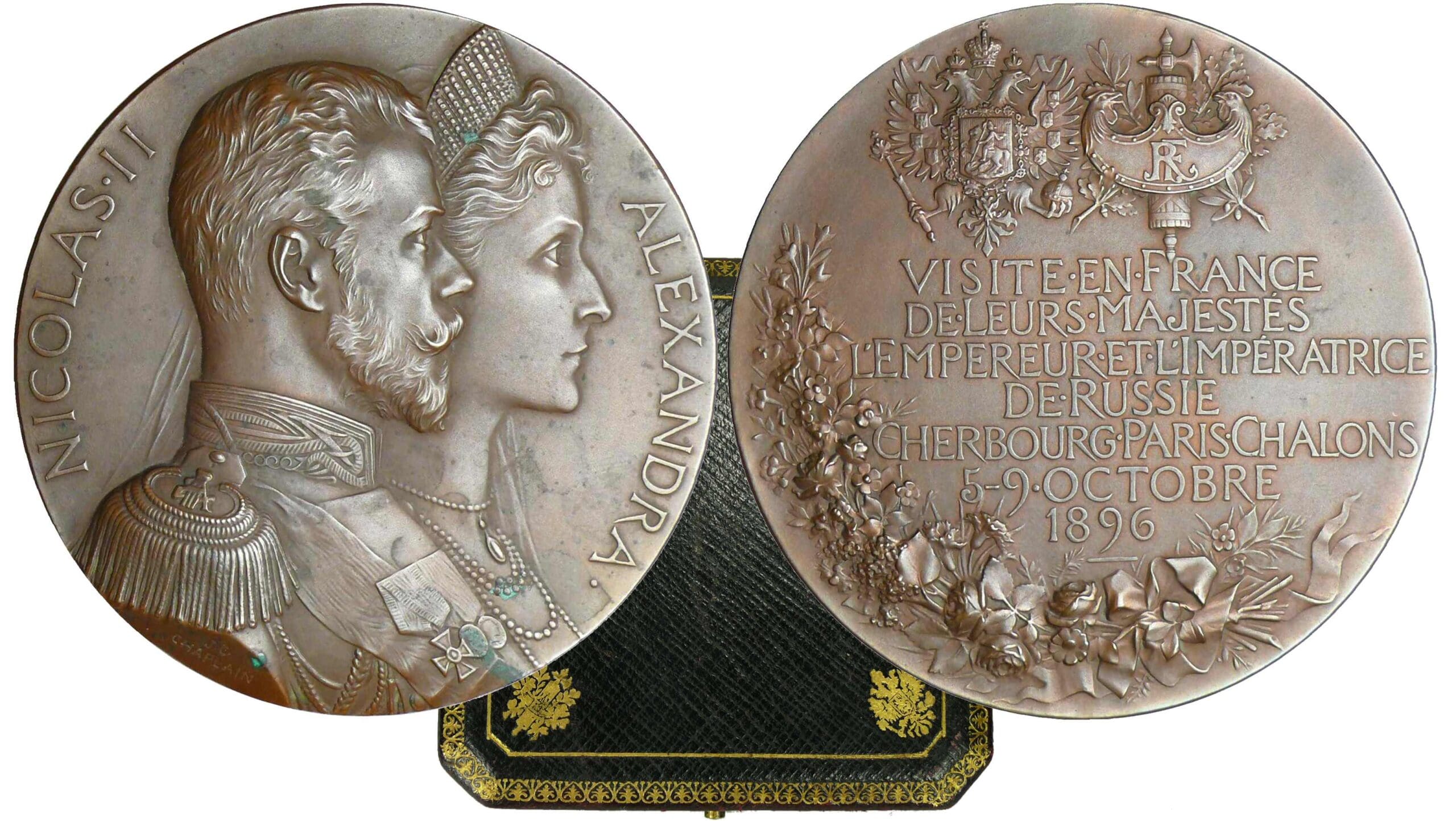 / Russie – Nicolas II – Médaille en bronze de la visite du couple impérial en France – 1896 par J.-C. Chaplain