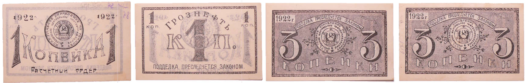 Russie – North Caucasus, Grozny – Lot de 4 billets, 1 rouble (x2), 3 roubles (x2) (1922)